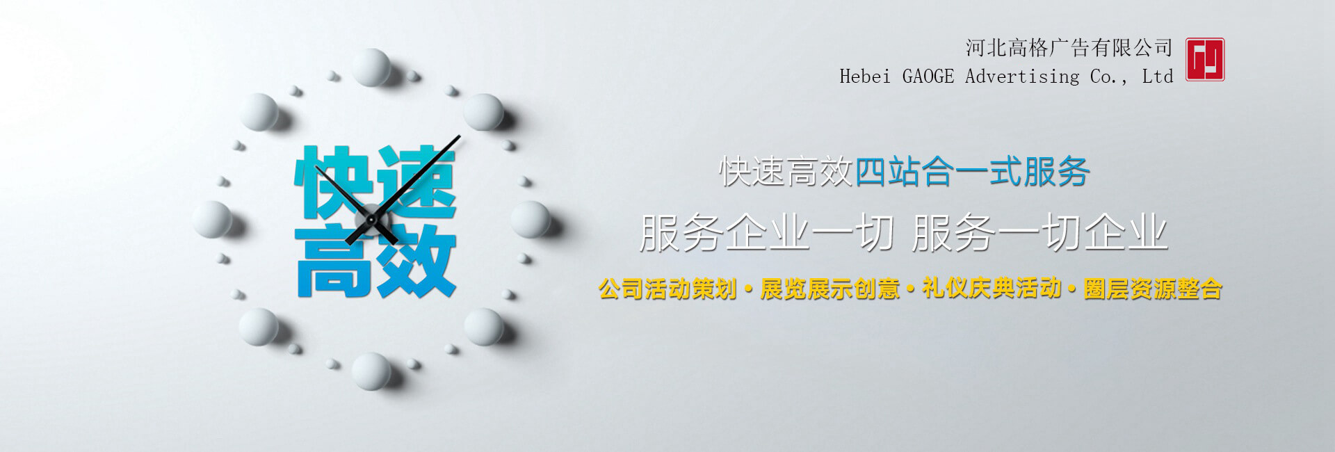 河北高格廣告有限公司是一家專業(yè)致力于大型文化活動(dòng)組織策劃、展覽展示工程策劃、展臺(tái)設(shè)計(jì)制作、特裝展臺(tái)搭建、會(huì)議會(huì)場布置、巡回展覽、路演、公關(guān)推廣執(zhí)行、會(huì)議慶典禮儀、路演設(shè)備租賃、倉儲(chǔ)等一站式的專業(yè)服務(wù)公司。本公司憑借創(chuàng)新領(lǐng)先的服務(wù)理念,大型的廠房空間,現(xiàn)代化的機(jī)械設(shè)備,高素質(zhì)專業(yè)的服務(wù)團(tuán)隊(duì),及在該行業(yè)多年的實(shí)戰(zhàn)經(jīng)驗(yàn),為地產(chǎn)營銷提供了優(yōu)秀的活動(dòng)方案、為不同行業(yè)的數(shù)千家企業(yè)提供了專業(yè)個(gè)性化的空間展示方案,幫助客戶實(shí)現(xiàn)了自我品牌的提升和企業(yè)利潤的雙贏。...